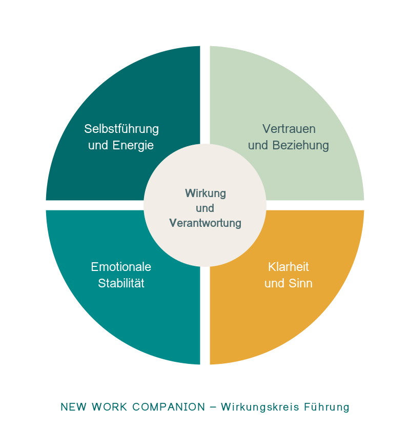 Der Wirkungskreis Führung beschreibt Führung als ganzheitliches Zusammenspiel innerer Haltung, bewusster Selbstführung, tragfähiger Beziehungen, klarer Ausrichtung und emotionaler Stabilität.